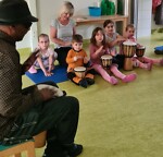 Wer in dieser Woche an unserem Kindergarten vorbei ging wird sicher die Klänge vieler Trommeln gehört haben, welche rhythmisch geschlagen wurden. Grund dafür war ein besonderer Gast.