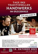 18. und 19. Oktober 2025 - Ein Wochenende voller Handwerkskunst in Niederwiesa, Frankenberg/Sa. und Hainichen. Unter dem Motto „texTour traditionell“ laden die drei Kommunen im Verbund texTour herzlich zum „Tag des traditionellen Handwerks“ ein. Besucherinnen und Besucher können alte Handwerkstechniken entdecken, Vorführungen erleben und selbst aktiv werden.