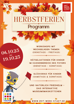 Die ZeitWerkStadt Frankenberg lädt in den Herbstferien vom 4. bis 19. Oktober 2025 zu einem abwechslungsreichen Programm für Familien und Kinder ein.