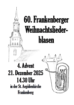 Am 4. Advent, um 14.30 Uhr findet in der St. Aegidienkirche Frankenberg das nunmehr 60. Weihnachtsliederblasen statt.