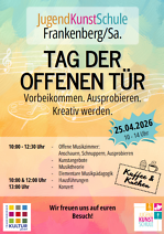 Die JugendKunstSchule öffnet am 25.04.2026, von 10 bis 14 Uhr ihre Türen.