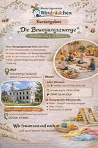 Die Kindertagesstätte Windrädchen bietet ab 06. Mai einen neuen Kurs an - "Die Bewegungszwerge", für Kinder von 4 bis 12 Monaten.