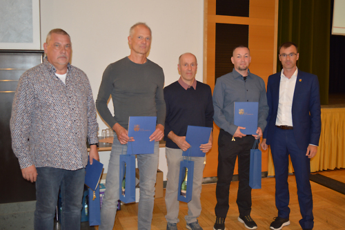 Im Bild von links: Heiko Heilmann, Matthias Bergk, Achim Thimann, René Lüth, Bürgermeister Oliver Gerstner.