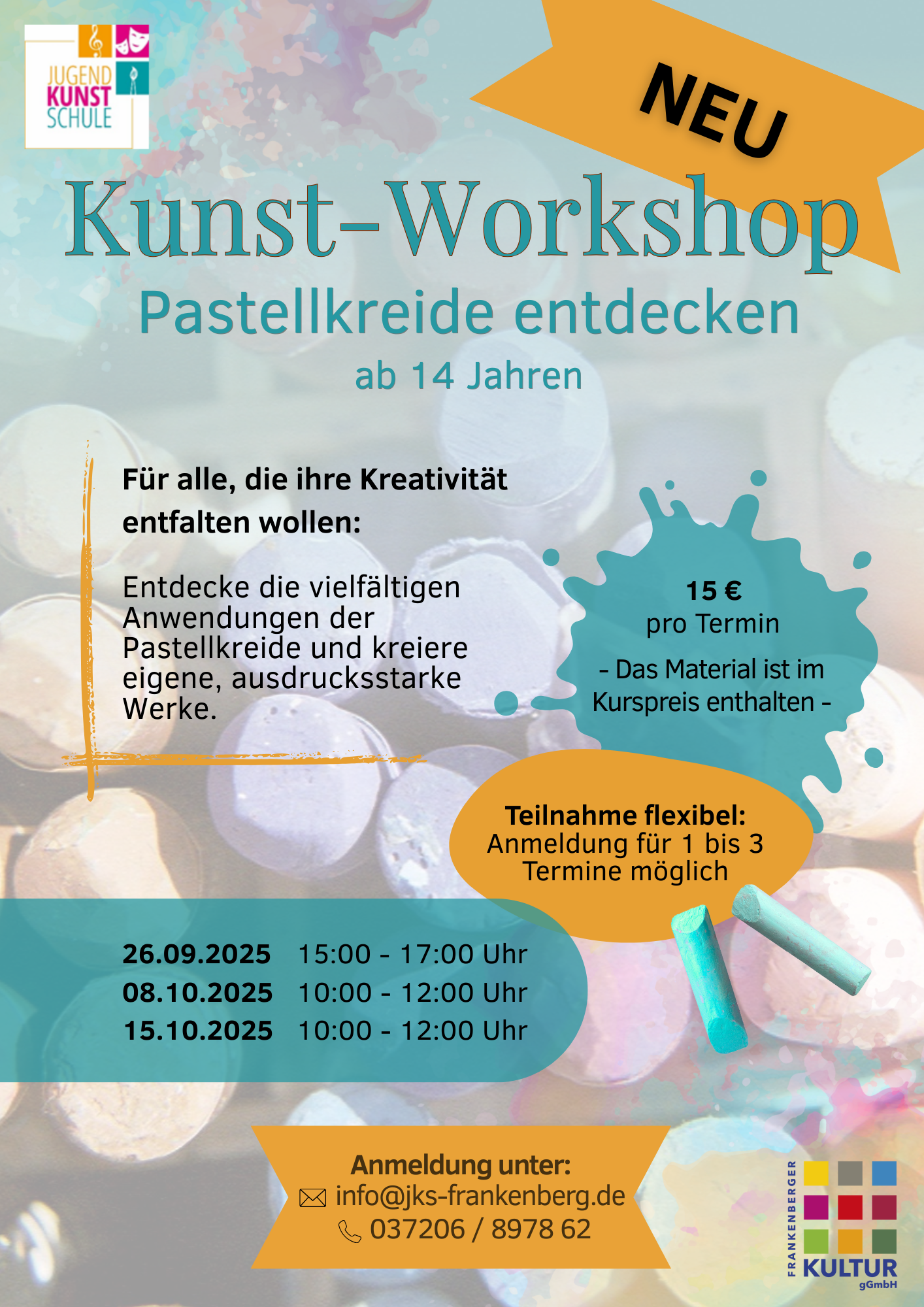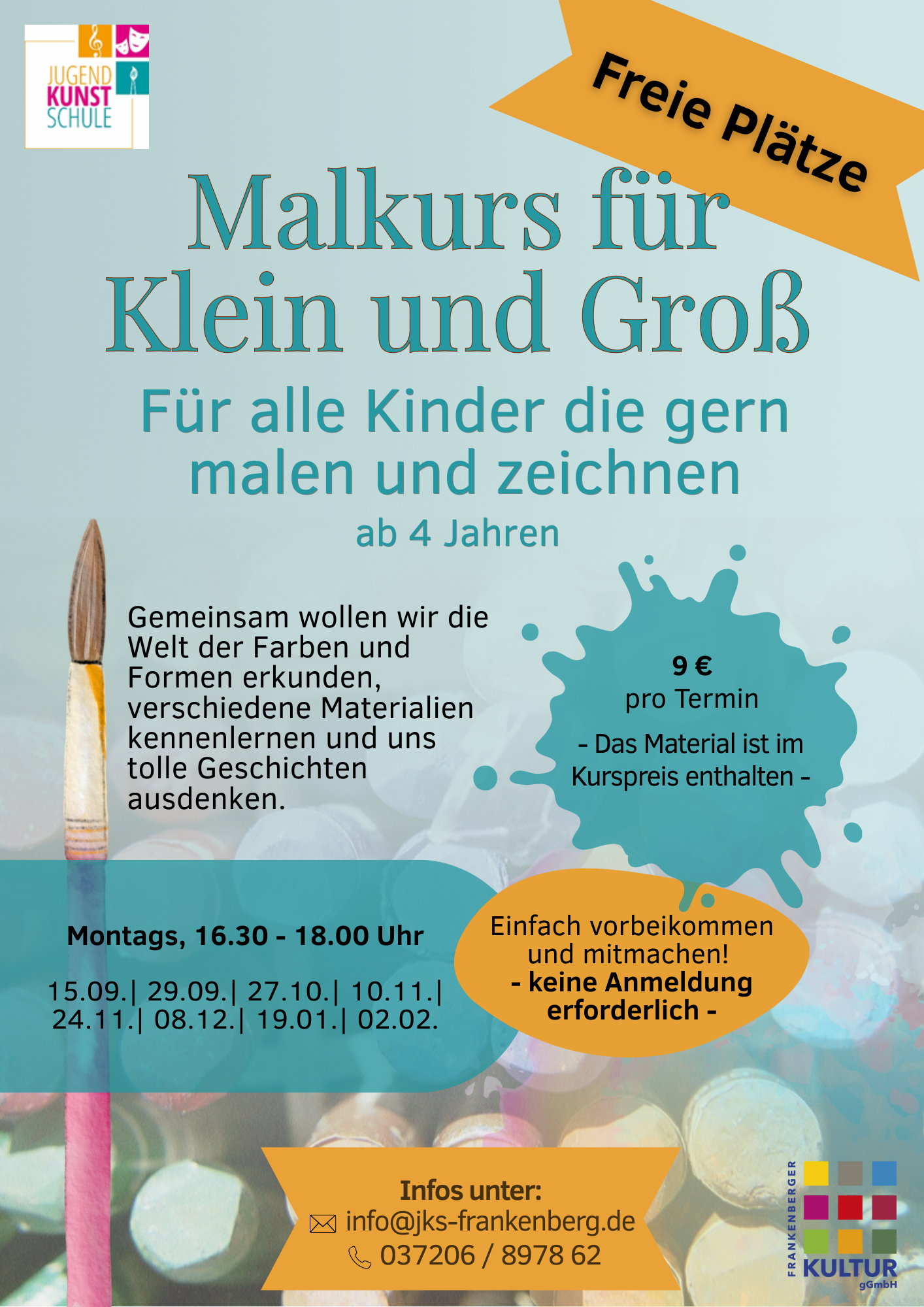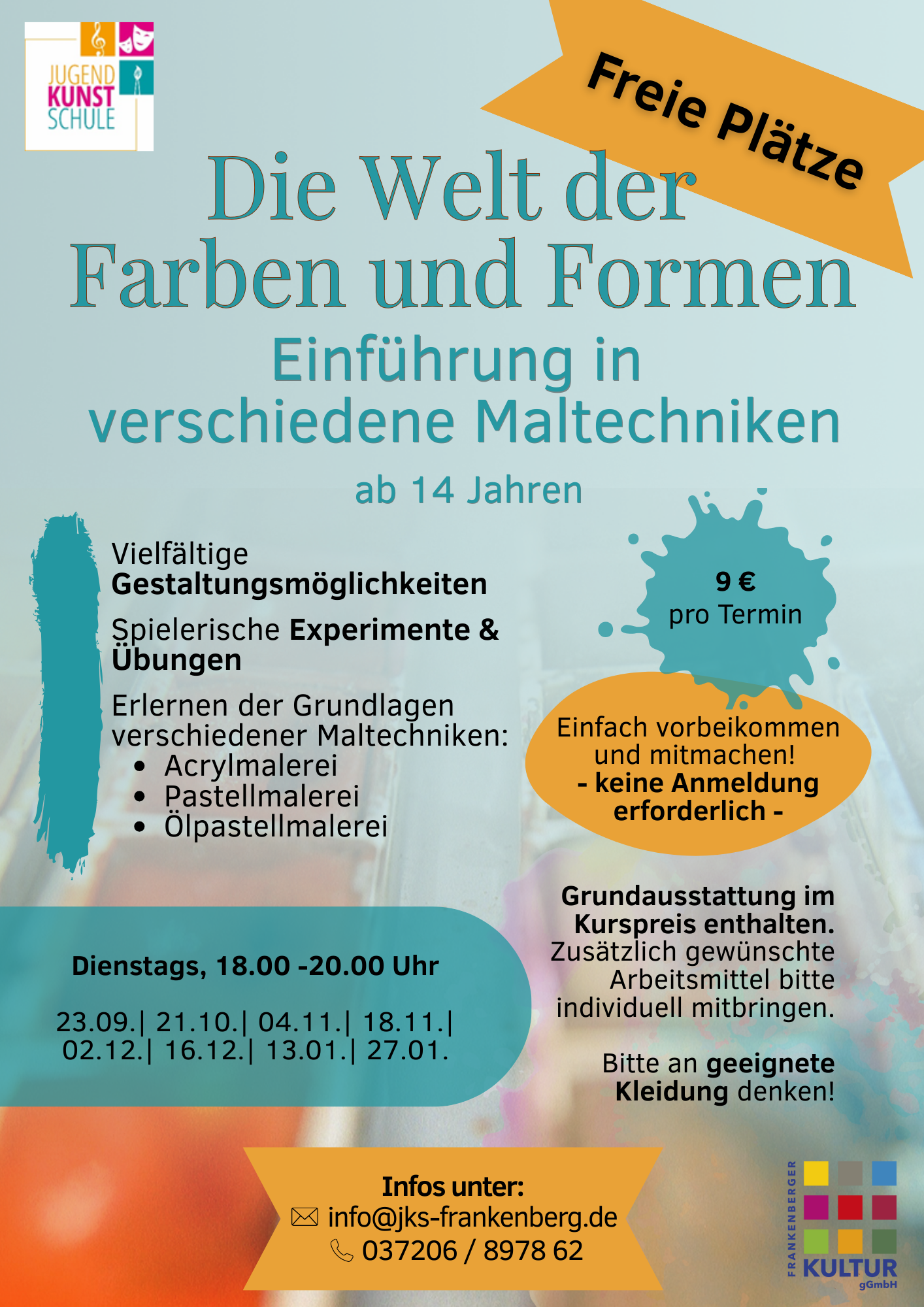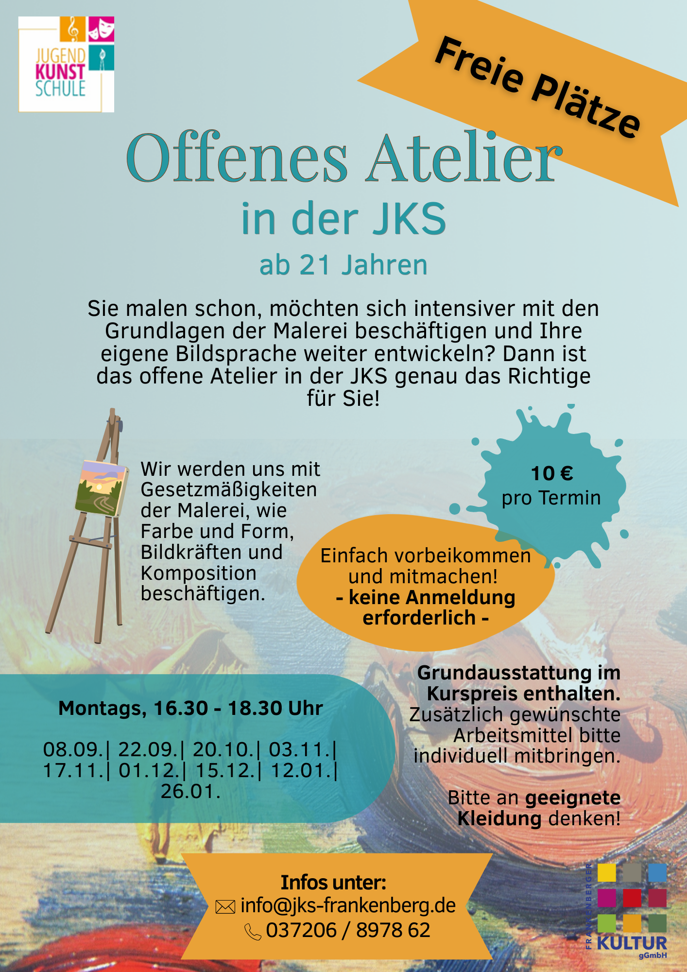 Anmeldung und weitere Infos direkt bei der JugendKunstSchule.