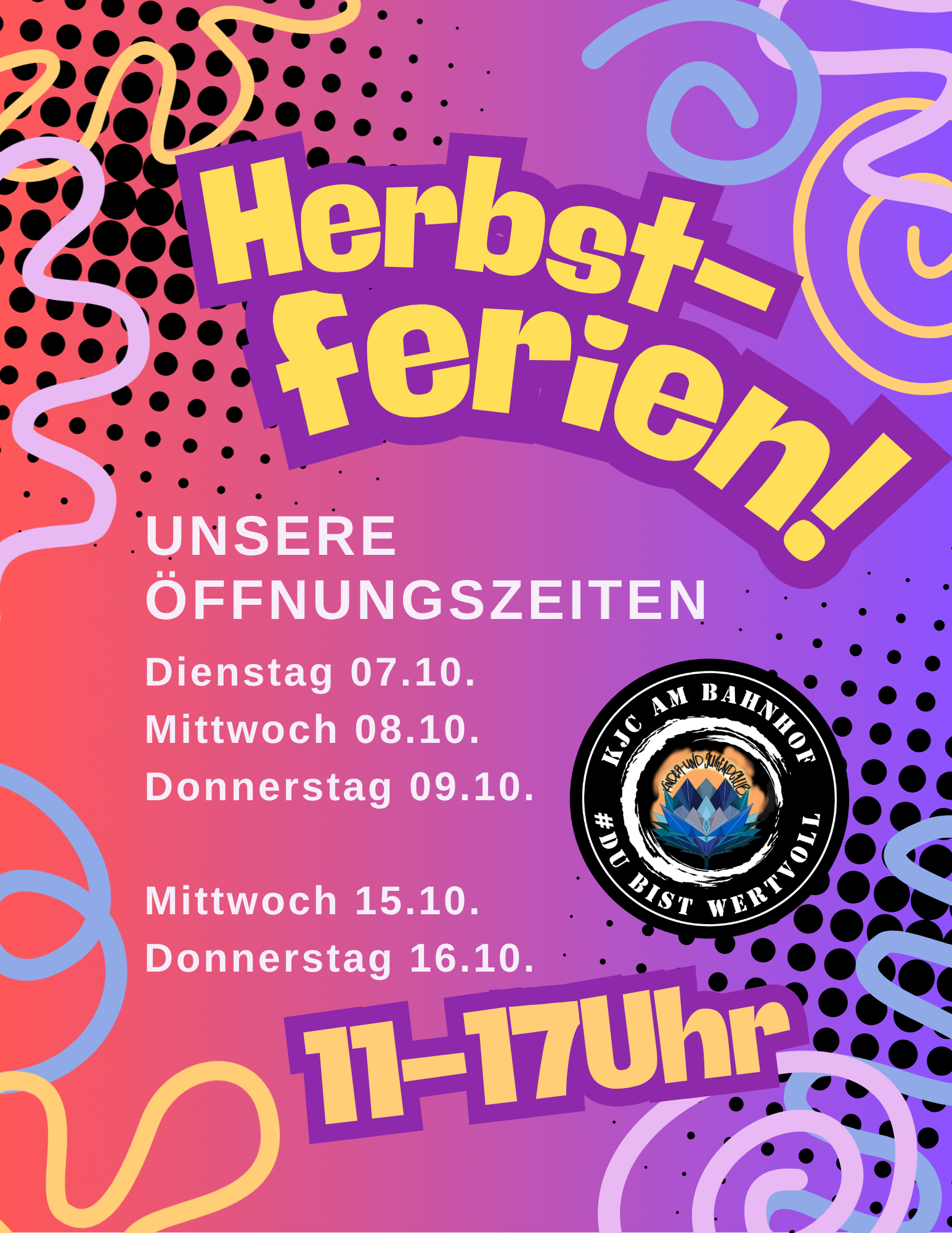 Der Kinder- und Jugendclub Am Bahnhof öffnet in den Herbstferien an folgenden Tagen: