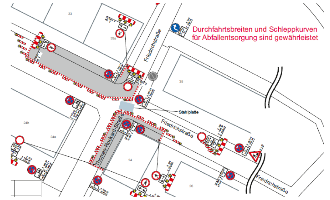 Im Zeitraum vom 27. Oktober bis voraussichtlich 06. Dezember 2025 werden im Auftrag von der inetz GmbH im Bereich Friedrichstraße und Thomas-Rockard-Straße die Gasleitung und die Hausanschlüsse erneuert. Während der Bauzeit kommt es im Kreuzungsbereich zu erheblichen Einschränkungen im ruhenden sowie fließenden Verkehr. In Abstimmung mit dem Bauunternehmen ist die Zufahrt in die Friedrichstraße, Thomas-Rockard-Straße und Georg-Hager-Straße für die Anlieger gewährleistet.