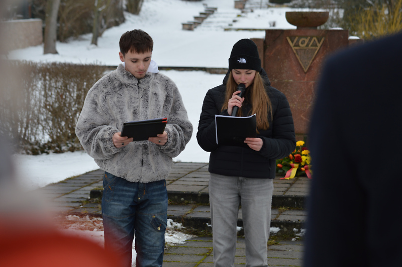 Zahlreiche Vertreterinnen und Vertreter aus Zivilgesellschaft, Opferverbänden, dem Stadtrat sowie aus dem schulischen Bereich nahmen an der Gedenkfeier teil. Gestaltet wurde die Gedenkveranstaltung, in Zusammenarbeit mit dem gesellschaftswissenschaftlichen Bereich, gemeinsam mit Schülerinnen und Schülern der Klassenstufe 11 des Martin-Luther-Gymnasiums.